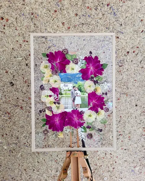 Aus deinem bereits getrockneten Brautstrauß wird ein Kunstwerk für die Wand.